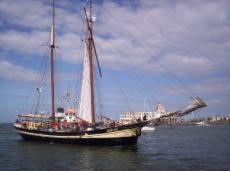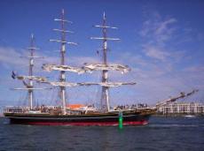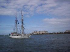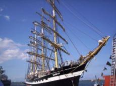 Anlegemanöver der Krusenstern, mitsegeln nach vorheriger Anmeldung möglich.